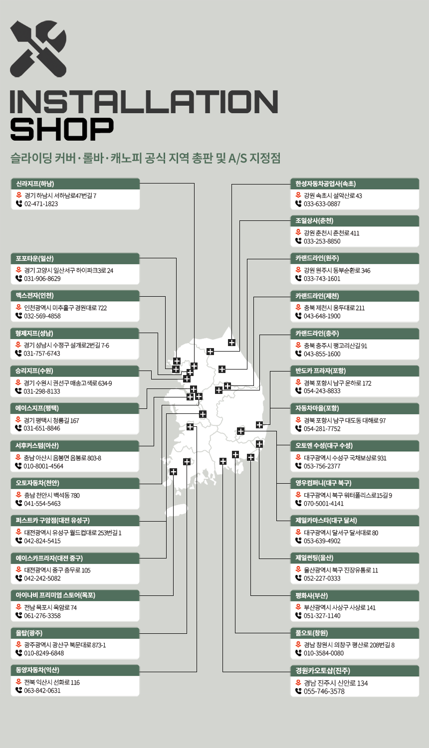 - 장착성 : 고객님 주소지 인근의 장착판매점으로 배송되며, 제품이 도착되면 유선으로 고객님께 연락이 가며, 일정을 잡아서 방문장착 받으시면 됩니다.